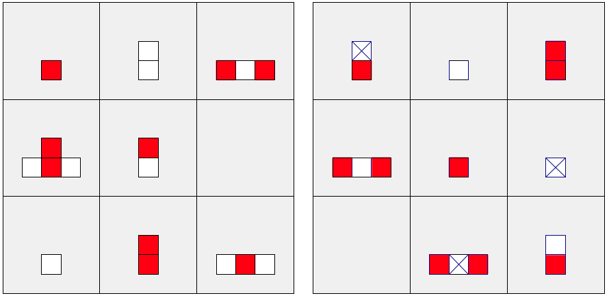 Tasks: Describe the mathematical meaning of each image. Predict the value of the "X"d white block. Compare the images.